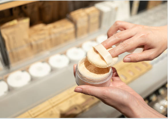 パフに含ませてポンポンと軽く叩くだけで、ムラなく均一に仕上がります。