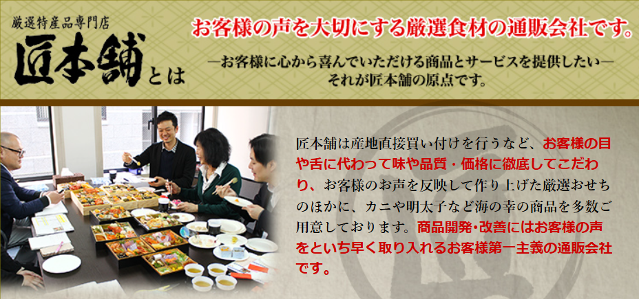 「匠本舗」は、全国各地の老舗料亭や有名料理人が監修した“本格おせち”を自宅で楽しめる通販サイトです。お正月の食卓を華やかに彩るおせち料理を、全国の名店と直接提携し、職人の技とこだわりをそのまま家庭に届けることをコンセプトとしています。
