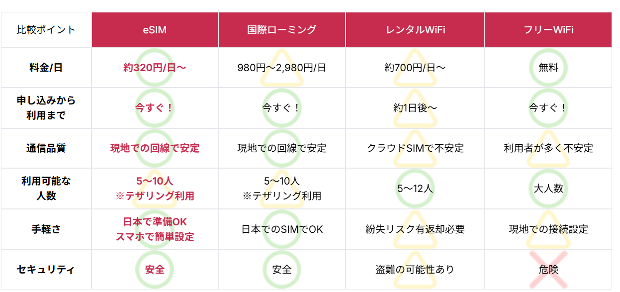 eSIM対応端末が必要なため、事前に対応状況を確認してください。
