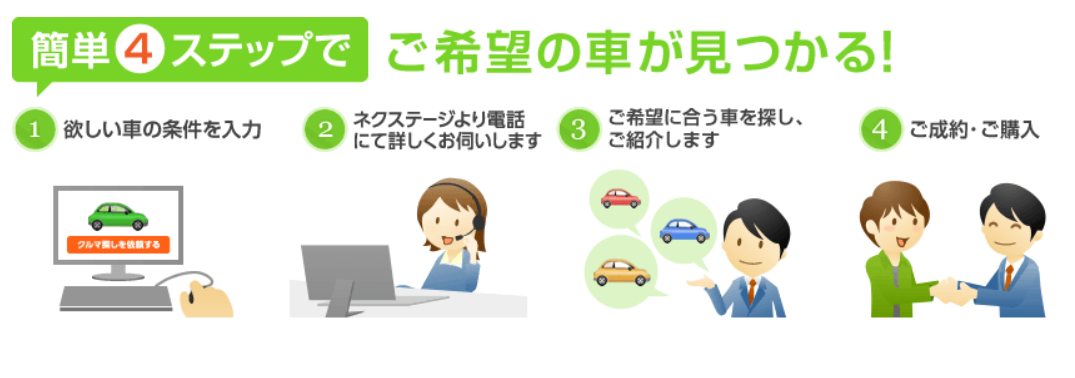 | 車両の探し方 | プロによる代行提案 | ユーザー自身で検索 |