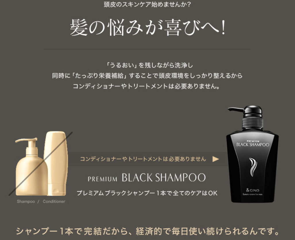 忙しい現代男性にとって、シャンプーの後にコンディショナーやトリートメントを馴染ませ、数分待つ時間は手間だと感じられがちです。しかし、洗浄力の強いシャンプーだけで済ませると、髪がパサつき、頭皮の乾燥を招く原因になります。プレミアムブラックシャンプーは、こうした課題を解決するために「トリートメント不要」の処方を実現しました。