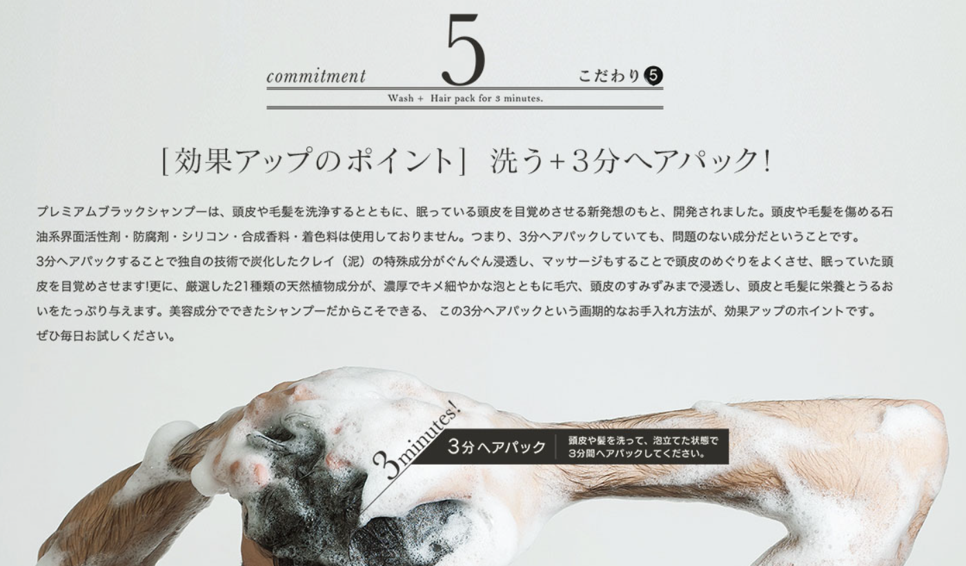 プレミアムブラックシャンプーの真価を発揮させる使い方が、独自の「3分間ヘアパック」です。通常のシャンプーはすぐに洗い流してしまいますが、この製品は泡立てた後、そのまま3分間放置することを推奨しています。これは、配合されている美容成分や植物エキスを、洗浄後の清潔な頭皮にじっくりと浸透させるための時間です。