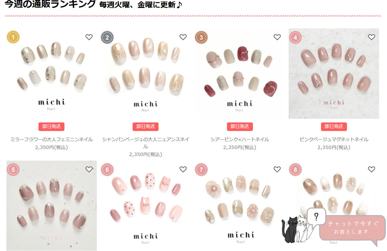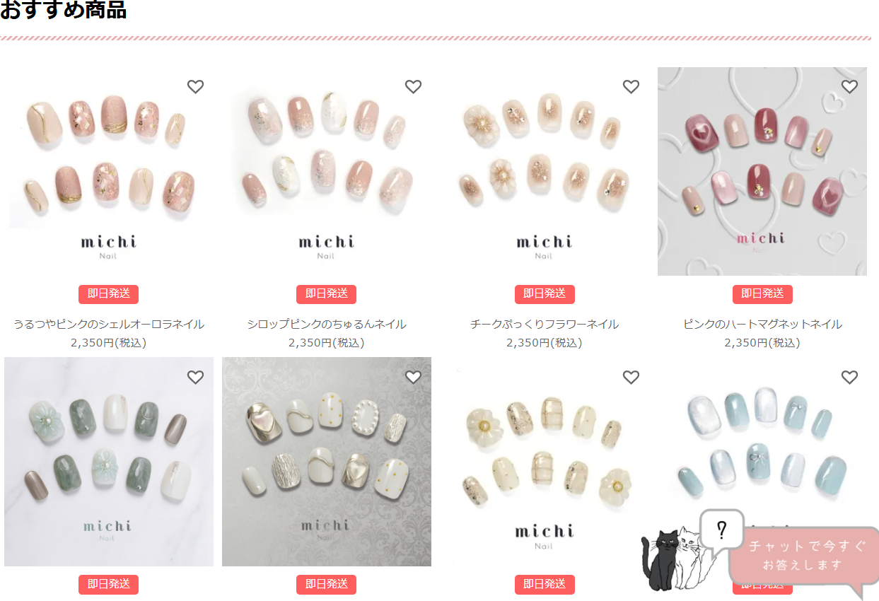 ネイルチップ専門店ミチネイルは、プロネイリストが一つひとつ丁寧に制作するネイルチップを取り扱うオンラインショップです。サロン品質のデザインを自宅で気軽に楽しめることをコンセプトに、豊富なデザインと幅広いサイズ展開を提供しています。仕事や家事、育児などでジェルネイルを継続できない方や、イベントのときだけネイルを楽しみたい方に選ばれています。