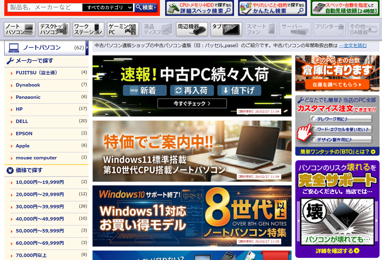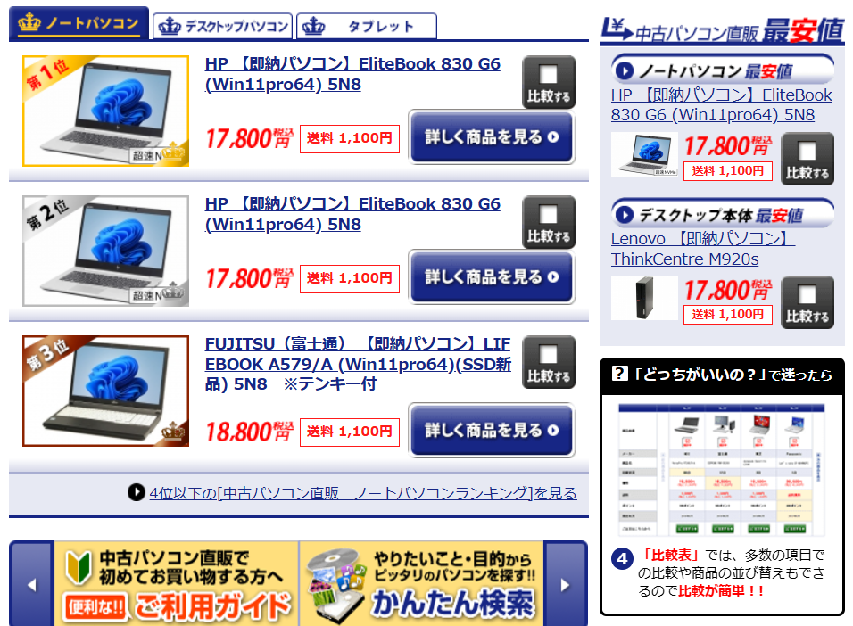 中古パソコン直販ではこれらの情報が明確に表示されているため、用途別に選びやすい設計になっています。