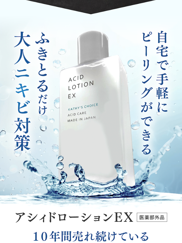 そんな悩みを持つ多くの方に支持されているのが、拭き取りタイプの薬用ニキビケアローション、【薬用アシィドローションEX】です。