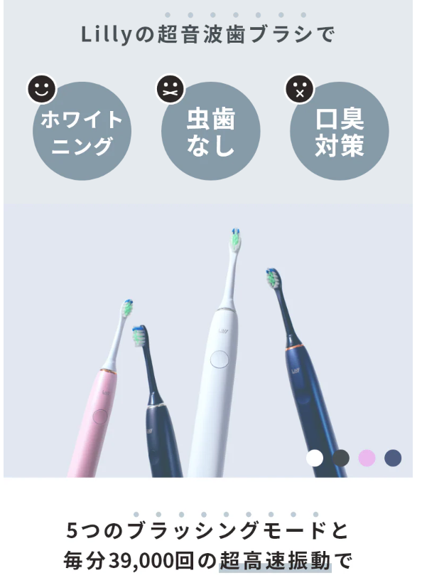 LIlly(リリー)は、電動歯ブラシと替えブラシの定期配送を組み合わせたサービスであり、日々のオーラルケアをより手軽に継続しやすくする仕組みが特徴です。替えブラシの交換を忘れがちな方や、手間を減らしたい方にとって、利便性の高い選択肢といえるでしょう。