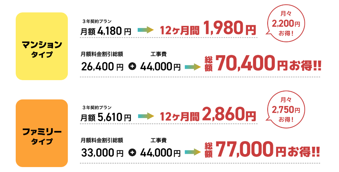 | 初期費用 | キャンペーン適用あり | 安価 | 標準的 |
