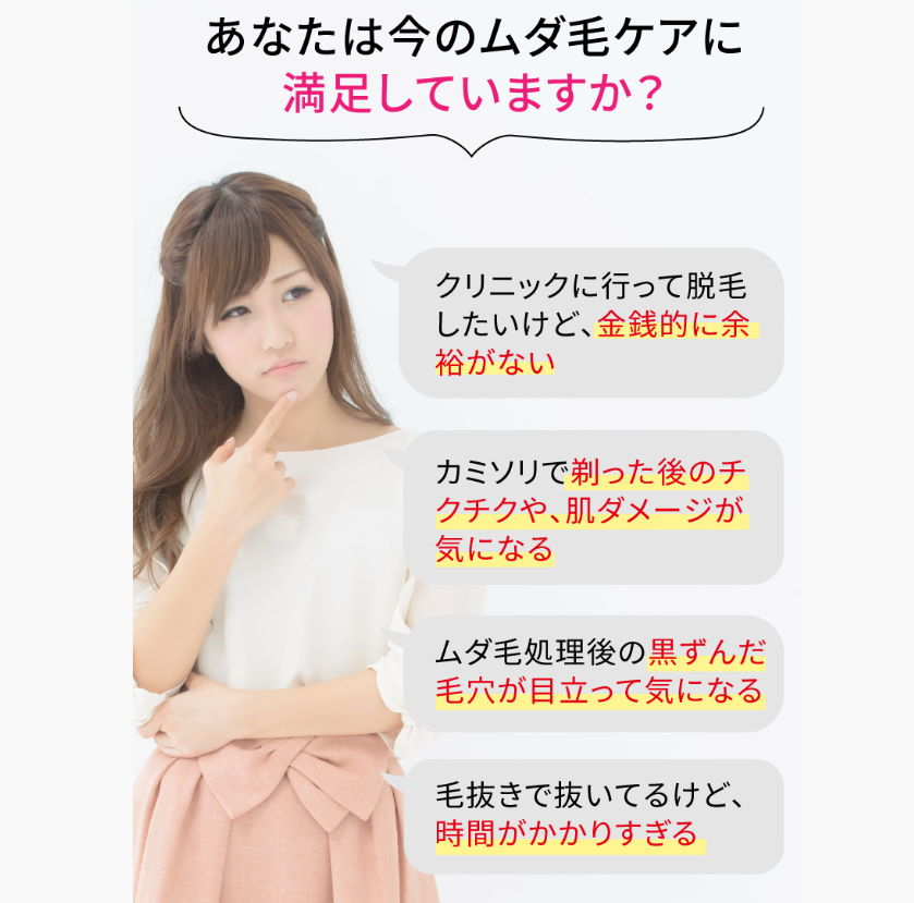 刃物を使用しないため、物理的な摩擦による肌荒れや傷のリスクを抑えられます。カミソリで処理した後のような「黒いポツポツ」が目立ちにくいのも大きな利点です。