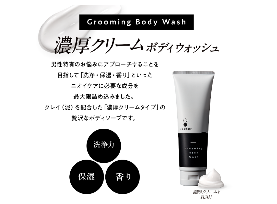 市販の安価な製品では得られない、上質な洗い心地と充実したスキンケア効果。まずは一本試してみて、その違いを肌で感じてみてください。清潔感溢れる大人の男性への第一歩は、毎日のボディケアから始まります。Rapterと共に、より自信の持てる毎日をスタートさせてみてはいかがでしょうか。