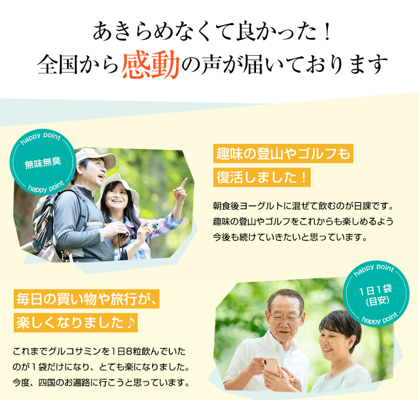 A5. 特に年齢制限はありませんが、主にひざ関節の違和感を感じ始める中高年の方を対象に開発された商品です。成長期のお子様や妊娠・授乳中の方の摂取については、医師にご相談ください。
