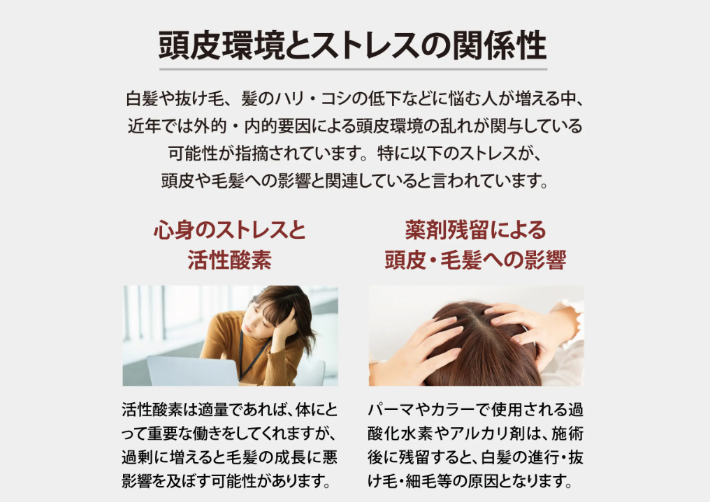 年齢を重ねるにつれて、「髪のハリやコシが弱くなってきた」「ボリュームが出にくい」と感じる方は少なくありません。その原因の一つとして、頭皮環境の変化が挙げられます。日々の生活習慣や外部環境の影響により、頭皮のコンディションは知らず知らずのうちに乱れやすくなります。