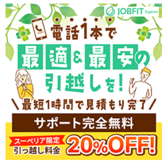 引っ越しの手間をまとめて解決する【ジョブフィットスーペリア】とはジョブフィットスーペリアは、引っ越し業者探しから電気・ガス・インターネットなどのライフライン手続きまで、引っ越しに関わるさまざまな準備を一括で整理しやすくするサポートサービスで...